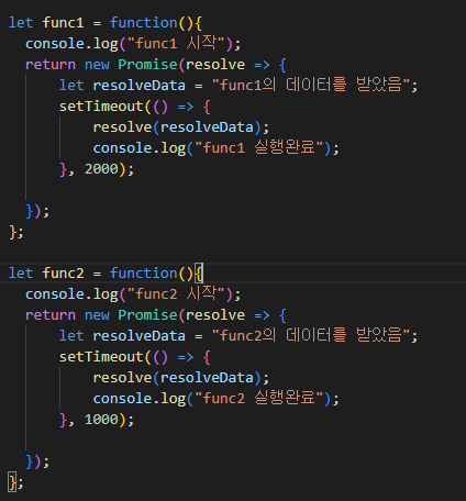 func2()는 1초의 딜레이를 두고 다음동작을 수행하는 Promise function이다.