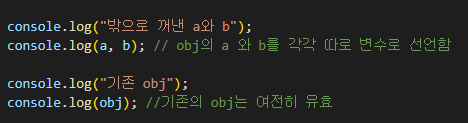 obj내부의 a와 b를 각각 따로 꺼내서 새로 쓰려면