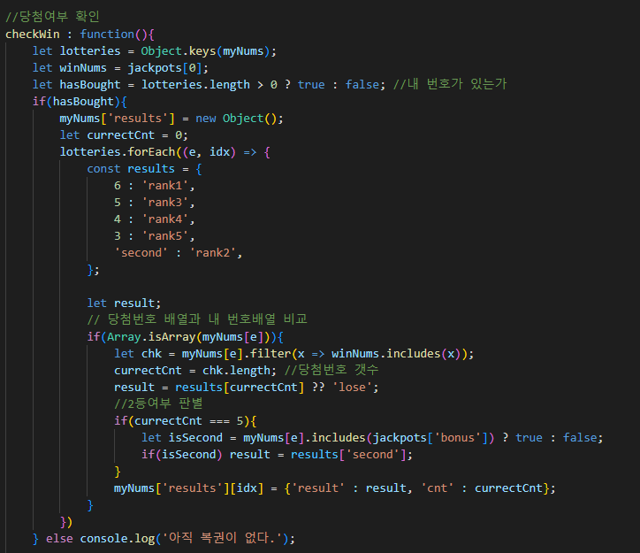 Array.includes(num)2등 번호 판별 :
